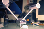 The models were from the AMT Space Ship Set and lit from within with wheat-grain bulbs that quickly burned out. Photos were shot with a 35 mm Nikon SLR against a backlit backdrop. |